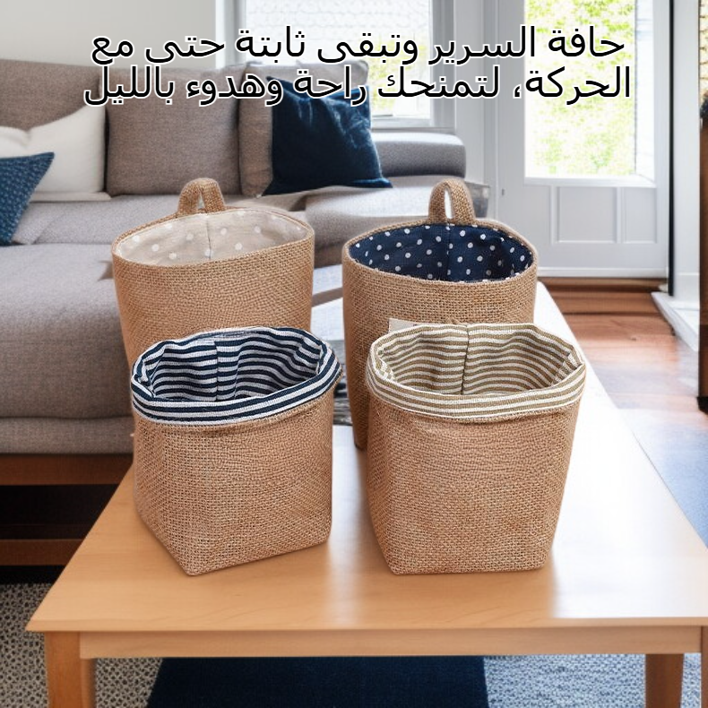 ● حقيبة تخزين عملية مُعلقة على السرير العلوي، مصنوعة من قماش الكتان المتين، تتيح لك حفظ الهاتف والأغراض الضرورية بجانبك بسهولة وأمان أثناء النوم. ● تصميم أنيق وعملي يوفر مساحة إضافية بجانب السرير، مثالي للغرف الصغيرة أو الأسرة ذات الطابقين، مما يسهل الوصول إلى هاتفك أو كتابك في أي وقت. ● تحتوي على عدة جيوب منظمة لتخزين الهاتف، الشاحن، الكتب أو النظارات، وتمنع الفوضى وتساعدك في الحفاظ على ترتيب أغراضك الأساسية. ● سهلة التركيب دون الحاجة لأدوات، تثبت بإحكام على حافة السرير وتبقى ثابتة حتى مع الحركة، لتمنحك راحة وهدوء بالليل.